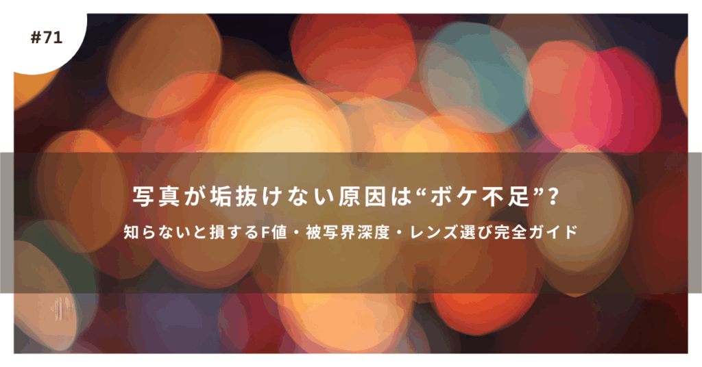 カメラマンの視点は、写真作品にオリジナリティと深みを与える重要な要素です。異なるアプローチや角度から被写体を捉えることで、独自の作品を生み出し、観る者に新たな視点を提供します。今回は、カメラマンは何をどのように見ているのか、どのようにし... 写真を考える写真が垢抜けない原因は“ボケ不足”?——知らないと損するF値・被写界深度・レンズ選び完全ガイド
